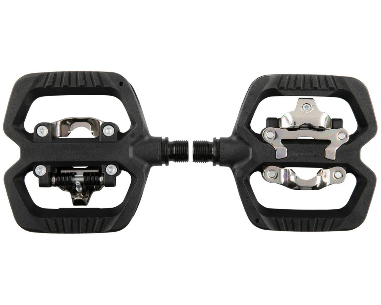 Das Neue Look Hybridpedale für alle Arten von Straßen und Wegen. Eine Seite Plattformpedal und eine Seite Klickpedal.